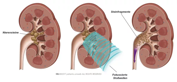 Diese Behandlung verwendet Schallwellen, um einen Nierenstein in winzige Stücke zu zerbrechen, die Sie dann beim Wasserlassen auf natürliche Weise ausscheiden können.